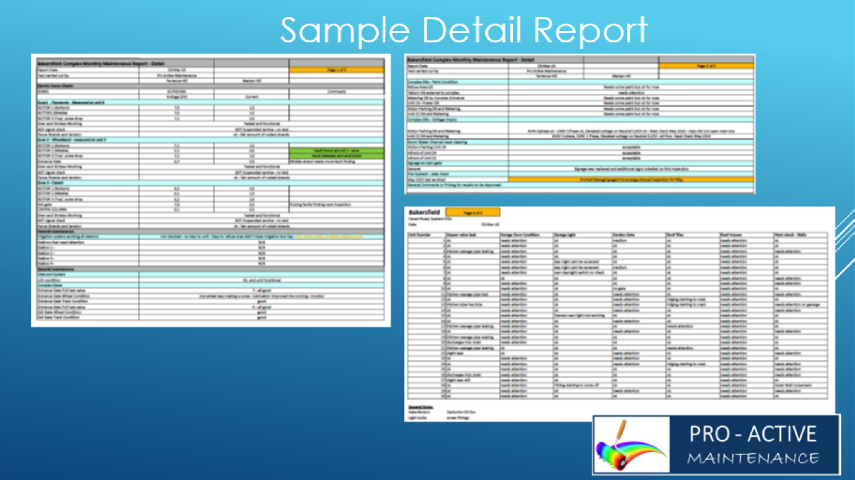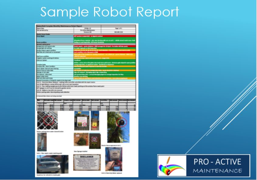 Pro – Active maintenance is primarily a pro-active inspection business providing reports on your sectional title complex or home owner association to assist in identifying maintenance needs. Our product offering specializes in 10 year Maintenance Plans (MRRP) and Monthly Maintenance Inspections.