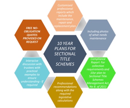 - Lastly the report includes a Compliance Check Sheet ensuring the 10year plan supplied is in accordance with the Sectional Title Schemes Management Act, 2011 (Act 8 of 2011) Gazetted on 07 October 2016. (Section 22 of the Act)